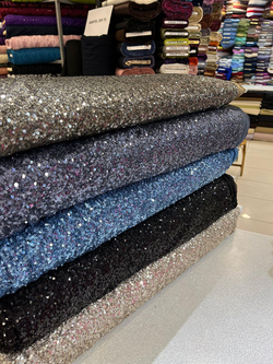 Sıvama Merserize Yoğun Pul Payet Kumaş İndigo