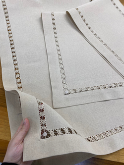 Masa konsol ve sehpa üç parça örtü içerir. Sayılabilir keten kumaştan üretilmiştir. Yaklaşık ölçüleri masa 140 cm x 50 cm , sehpa 80 cm x 40 cm, konsol 110 cm x 30 cm El nakışı, kanaviçe ve bir çok iş için uygundur.
